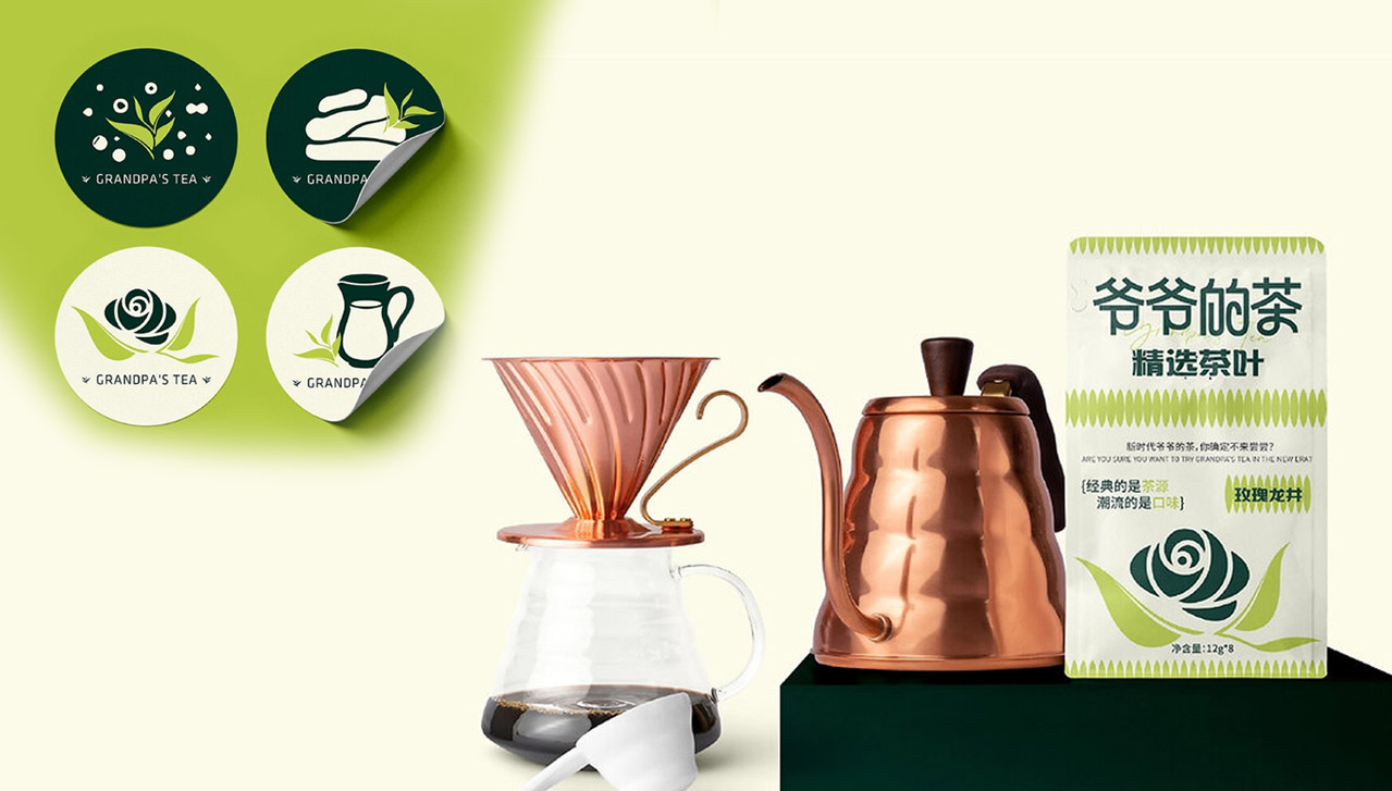 根据茶叶品类和品牌调性选择主色与辅色。如红茶可选暖色调(红、金),绿茶以青绿为主,乌龙茶则用深褐或墨绿体现沉稳。融合自然元素(如茶叶、山水、烟气纹样)或抽象符号(如八卦、万字符),增强视觉统一性。例如,Twinings的茶叶罐以彩虹色排列和复古图案吸引年轻消费者。